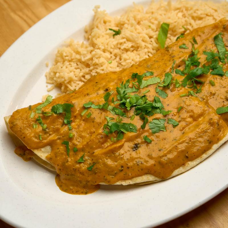 Grilled chicken with tandoori spices in cheese quesadilla, topped with our creamy masala, and served with rice.