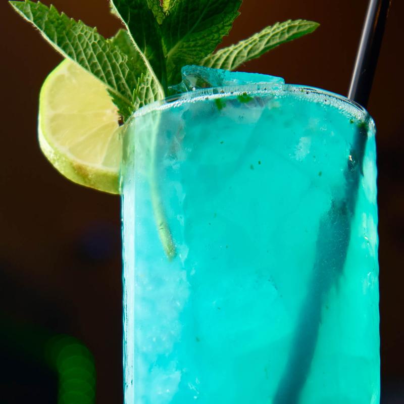 Vodka, blue curacao liqueur, lemonade, lemon.